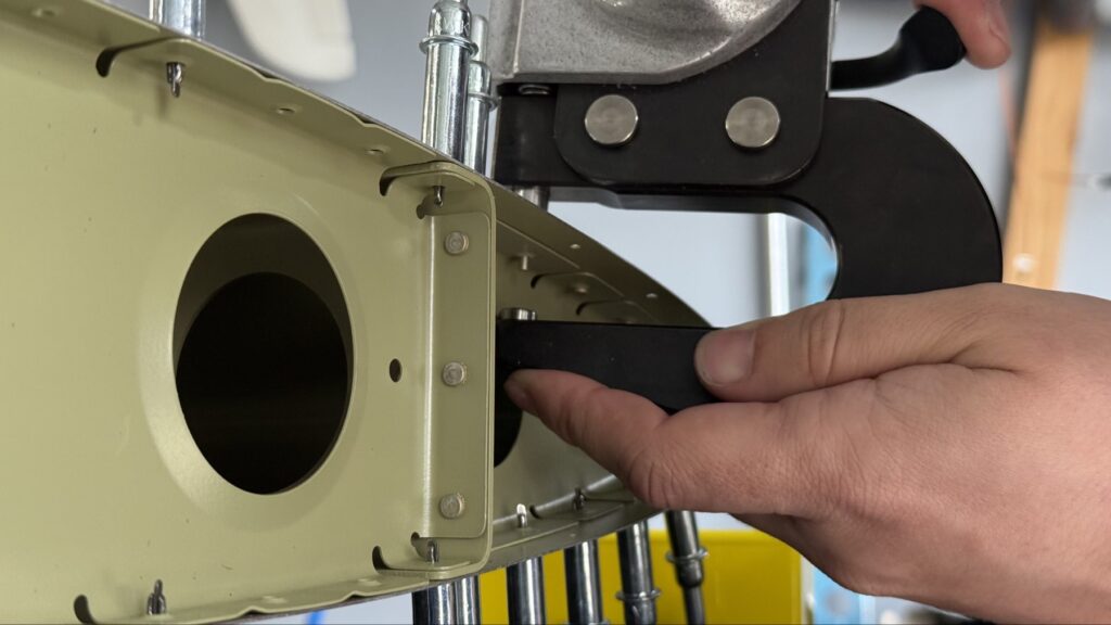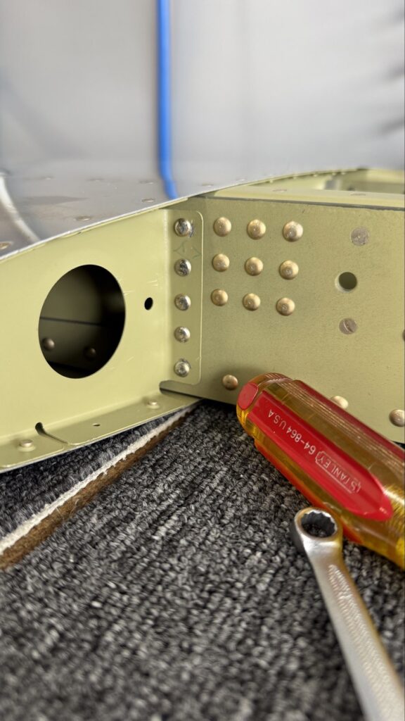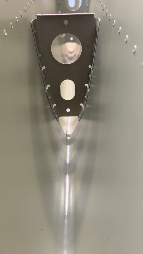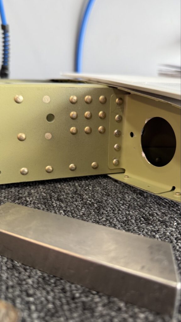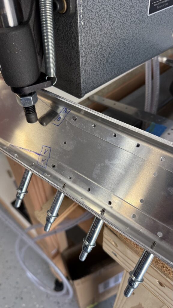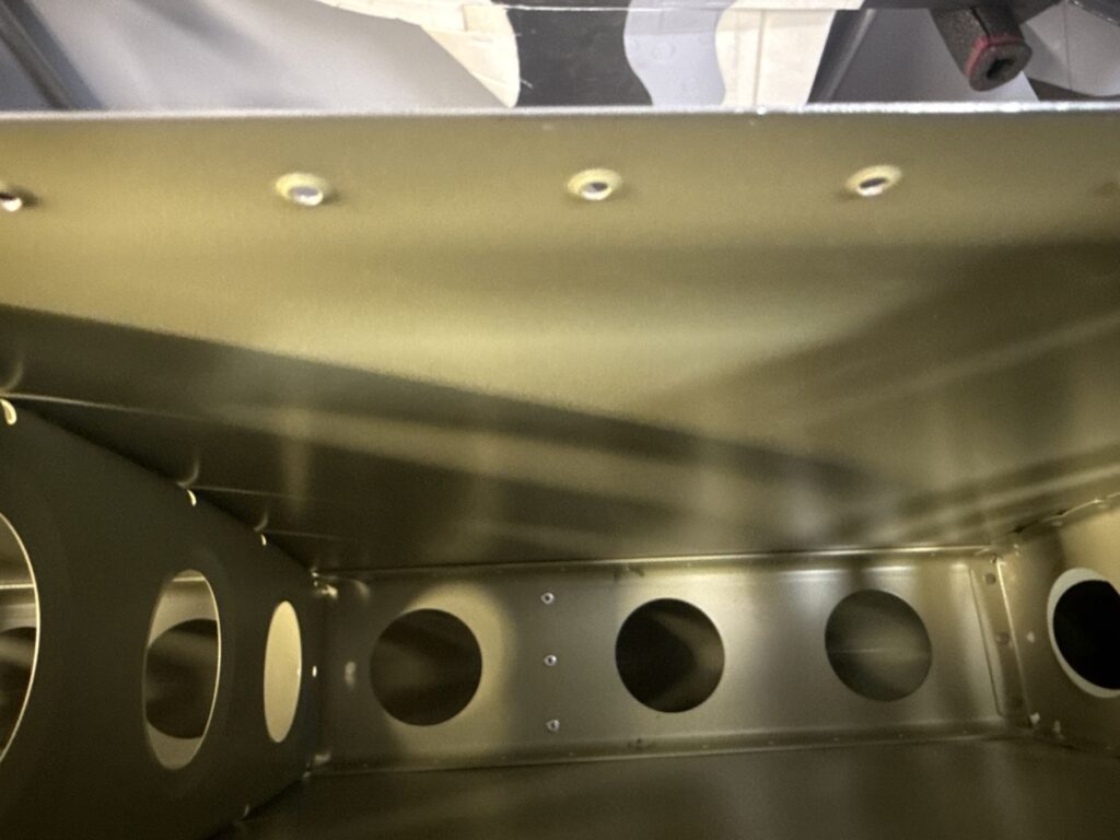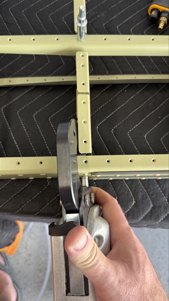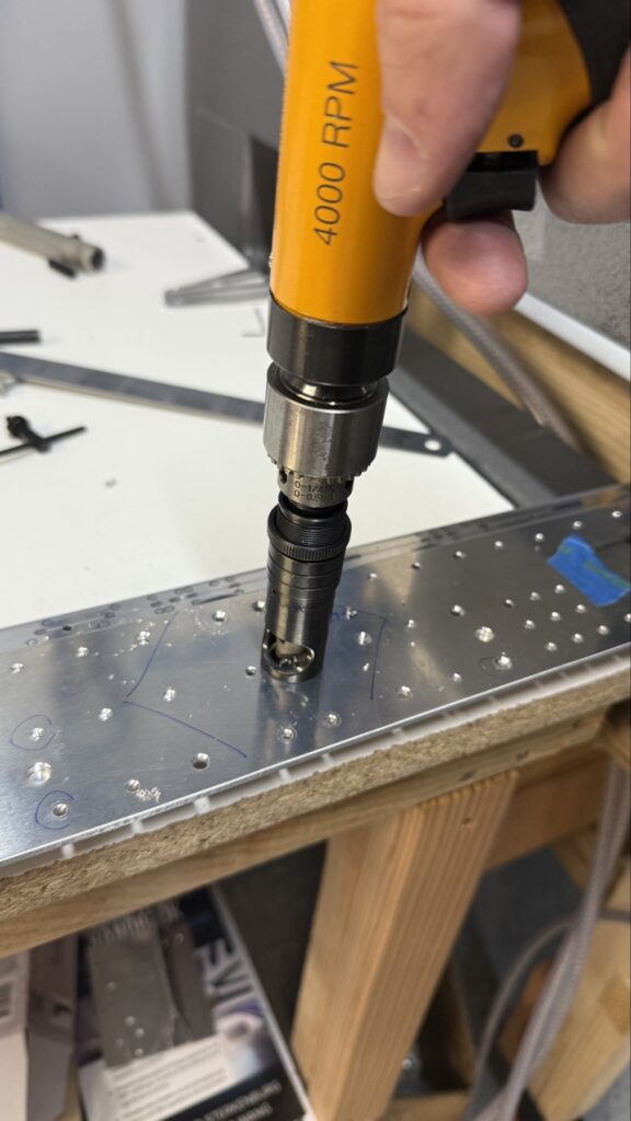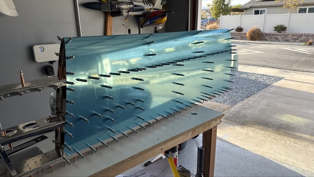 My first (and hopefully only) bonus hole! This happened while dimpling the skin.. the skin shifted (100% my fault) off the dimpling set right as I brought the lever down and instead of dimpling the hole, it created a new hole and dimpled that. I consulted with the online community as well as Vans and my EAA Tech Counselor and got a resounding, “Build on!” so I flattened it, dimpled the correct hole, and moved on. This will be an easy repair with epoxy and micro balloons later, before priming the outside. No structural concerns as long as I plug it.This is the other side of that same mistakeThis is the dimpling set up. I use this tool on the left called a DRDT2 that brings the force of everything down on to that metal with whatever tool is in it (in this case, a dimpling die) and it doesn’t even flinch. It just forms the aluminum.Turning these over was amazing!Got the skeleton structure all setThis tool is called a pneumatic squeezer. Same concept as the DRDT2 except hand-held and air powered. It provides over 3000psi of force, so, you really want to keep your fingies clearAhead of setting the skeleton in, these nose ribs have to be set in first. This is an example of one of those from the inside. I found that it is very easy to “over cook” these rivets with the rivet gun, and I’ll have some filling to do on the stabilizer ahead of painting, as there are some areas where I created little dimples. No biggy. Build on!I wish the mushroom head didn’t make these so dirty/marred but it’s whatever.Front spar assembly Cleco’d in. Fuck yeah!! It’s happening.Bonus hole flattened out pretty well. Body filler and some minor shaping and it’ll be like it was never there.Here is one area with the skeleton riveted in. That part down there is the front spar of the stabilizer, and then these on the sides are each rib. At the end, the rear spar gets set, attaching to both these ribs and the skin, resulting in a very strong structure.Called in some reinforcementsSo. Many. Rivets.Have to sign before closing, always!DONE! Well, mostly.. I had a couple tricky rivets that I address the next day..