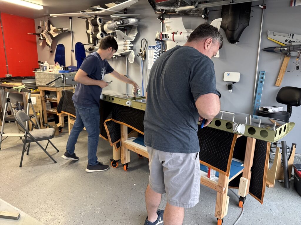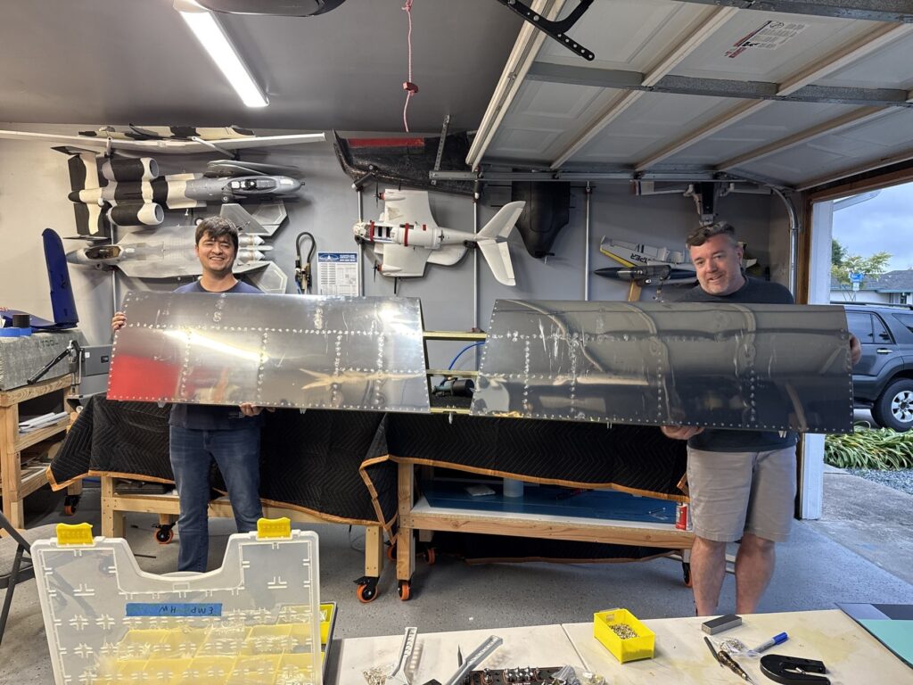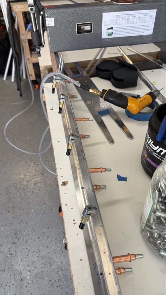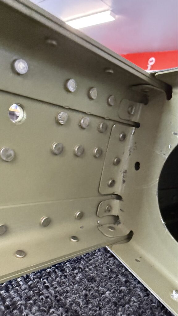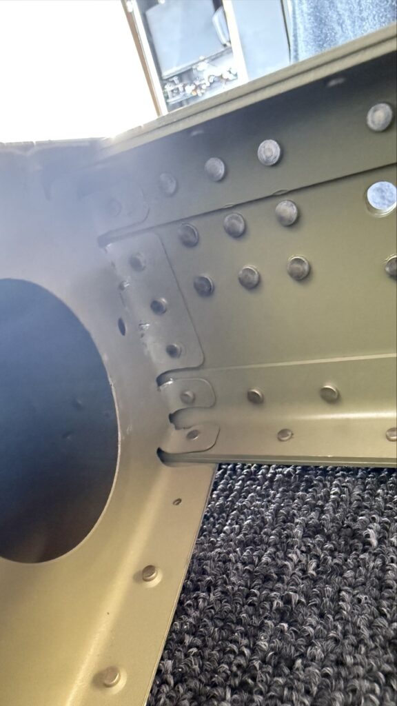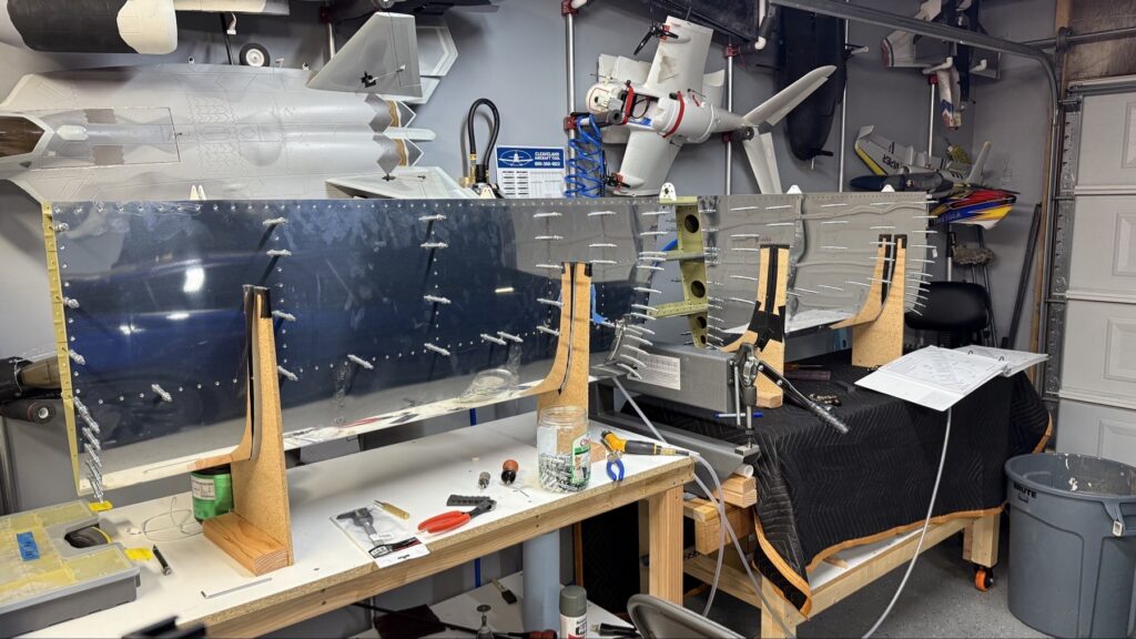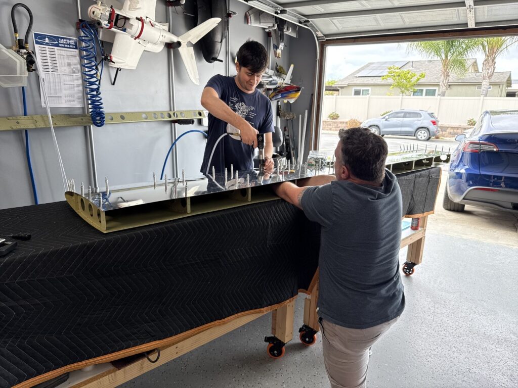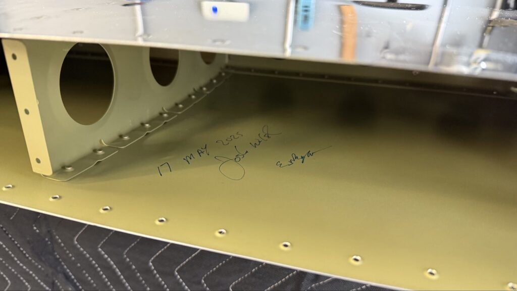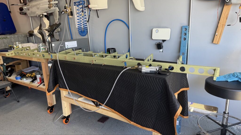 My first (and hopefully only) bonus hole! This happened while dimpling the skin.. the skin shifted (100% my fault) off the dimpling set right as I brought the lever down and instead of dimpling the hole, it created a new hole and dimpled that. I consulted with the online community as well as Vans and my EAA Tech Counselor and got a resounding, “Build on!” so I flattened it, dimpled the correct hole, and moved on. This will be an easy repair with epoxy and micro balloons later, before priming the outside. No structural concerns as long as I plug it.This is the other side of that same mistakeThis is the dimpling set up. I use this tool on the left called a DRDT2 that brings the force of everything down on to that metal with whatever tool is in it (in this case, a dimpling die) and it doesn’t even flinch. It just forms the aluminum.Turning these over was amazing!Got the skeleton structure all setThis tool is called a pneumatic squeezer. Same concept as the DRDT2 except hand-held and air powered. It provides over 3000psi of force, so, you really want to keep your fingies clearAhead of setting the skeleton in, these nose ribs have to be set in first. This is an example of one of those from the inside. I found that it is very easy to “over cook” these rivets with the rivet gun, and I’ll have some filling to do on the stabilizer ahead of painting, as there are some areas where I created little dimples. No biggy. Build on!I wish the mushroom head didn’t make these so dirty/marred but it’s whatever.Front spar assembly Cleco’d in. Fuck yeah!! It’s happening.Bonus hole flattened out pretty well. Body filler and some minor shaping and it’ll be like it was never there.Here is one area with the skeleton riveted in. That part down there is the front spar of the stabilizer, and then these on the sides are each rib. At the end, the rear spar gets set, attaching to both these ribs and the skin, resulting in a very strong structure.Called in some reinforcementsSo. Many. Rivets.Have to sign before closing, always!DONE! Well, mostly.. I had a couple tricky rivets that I address the next day..