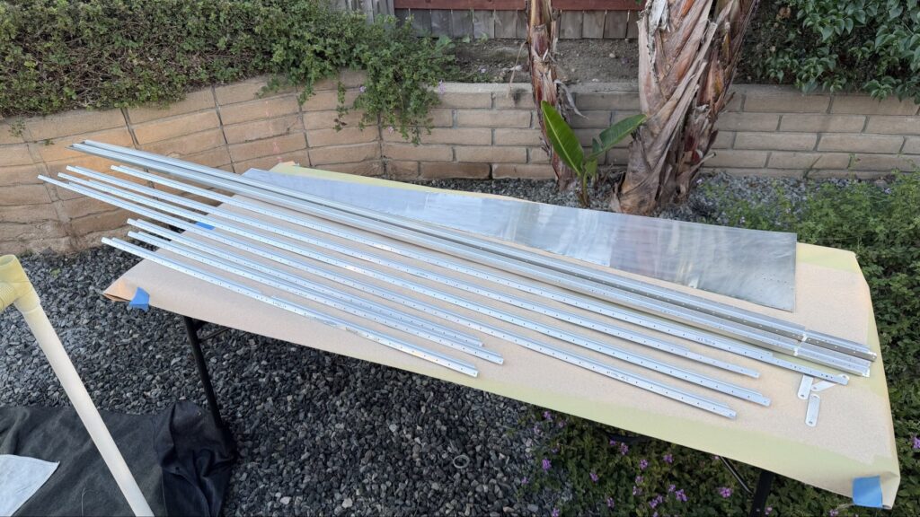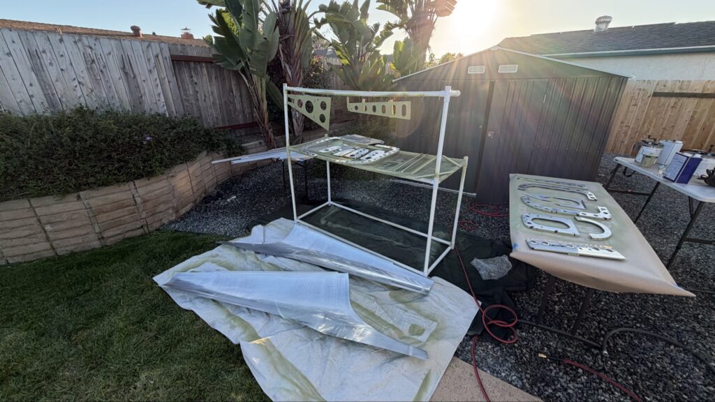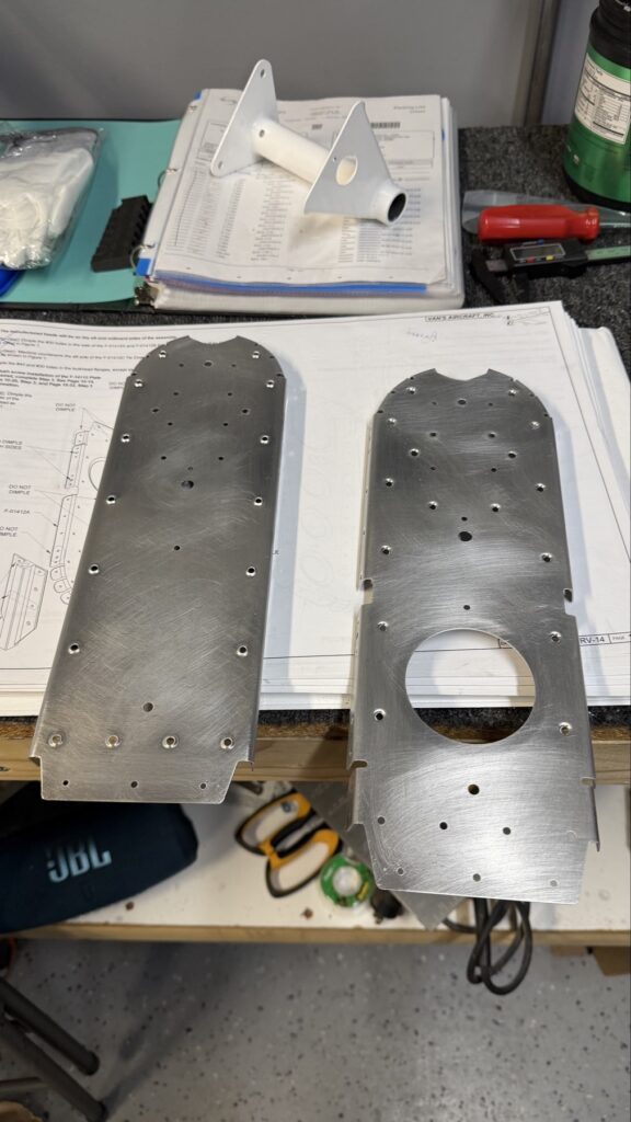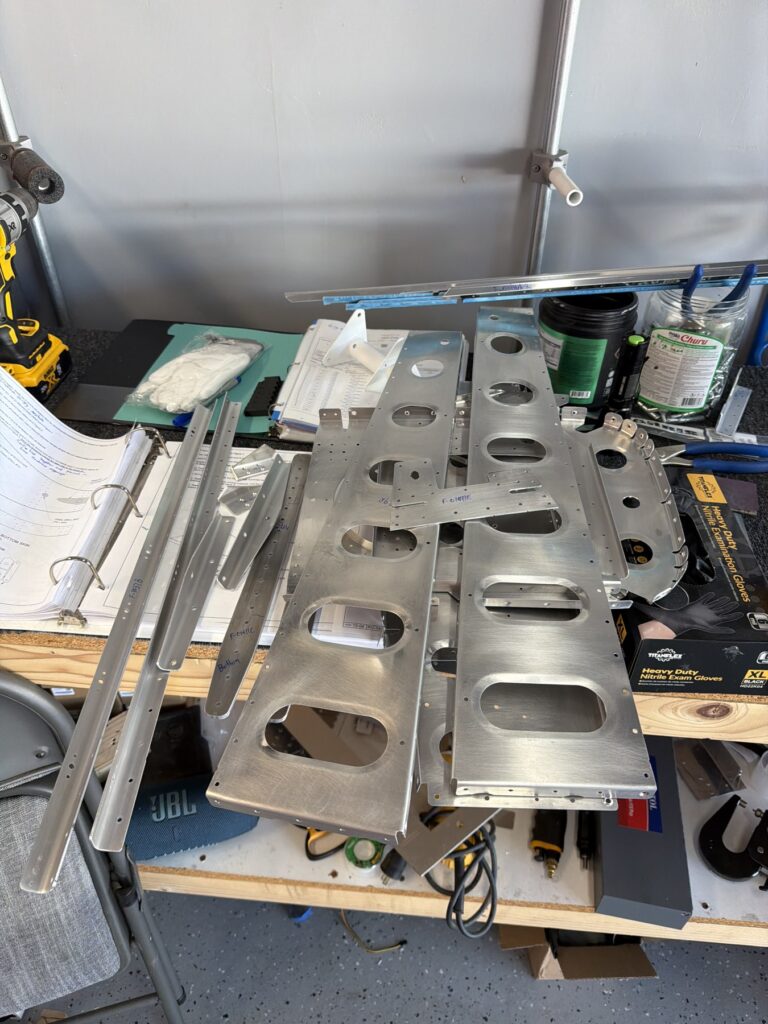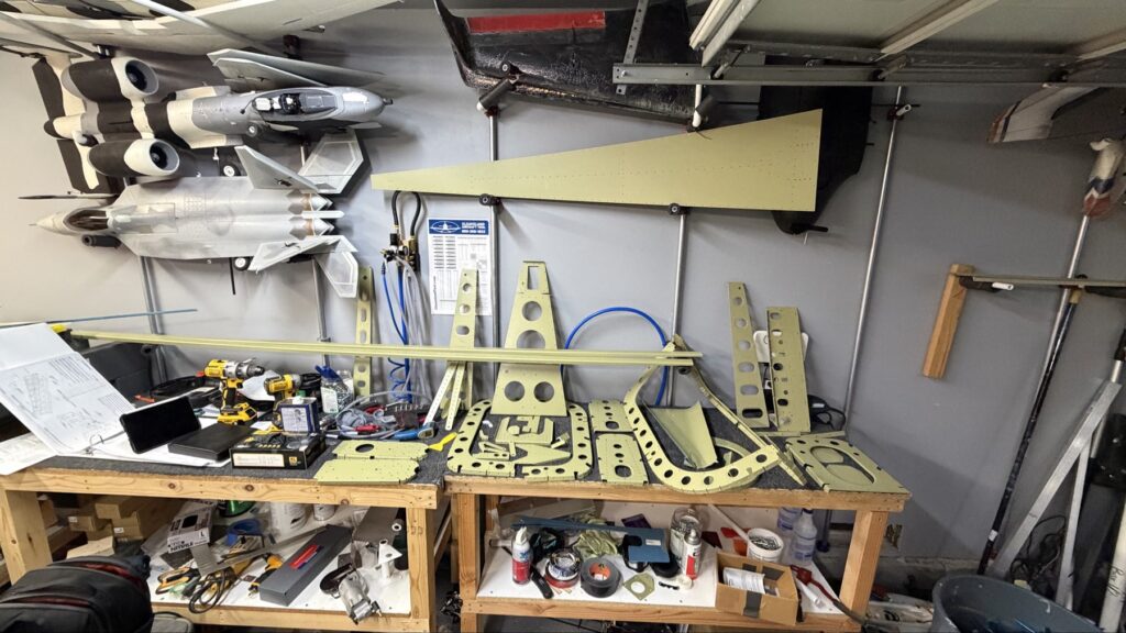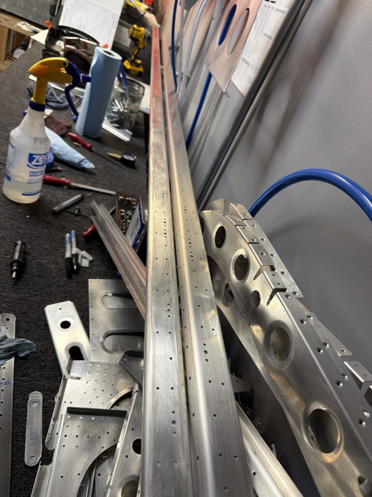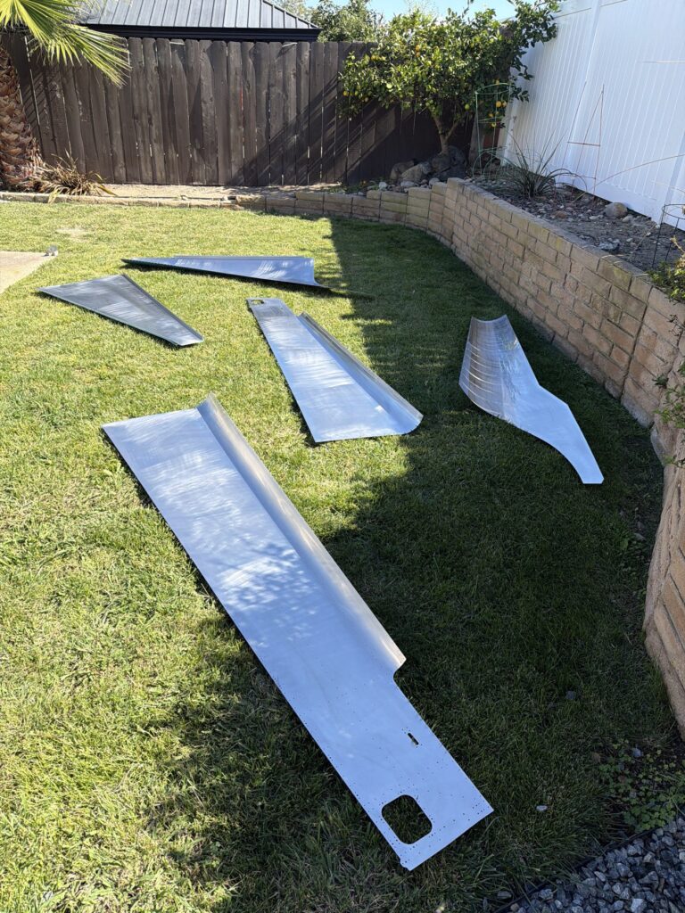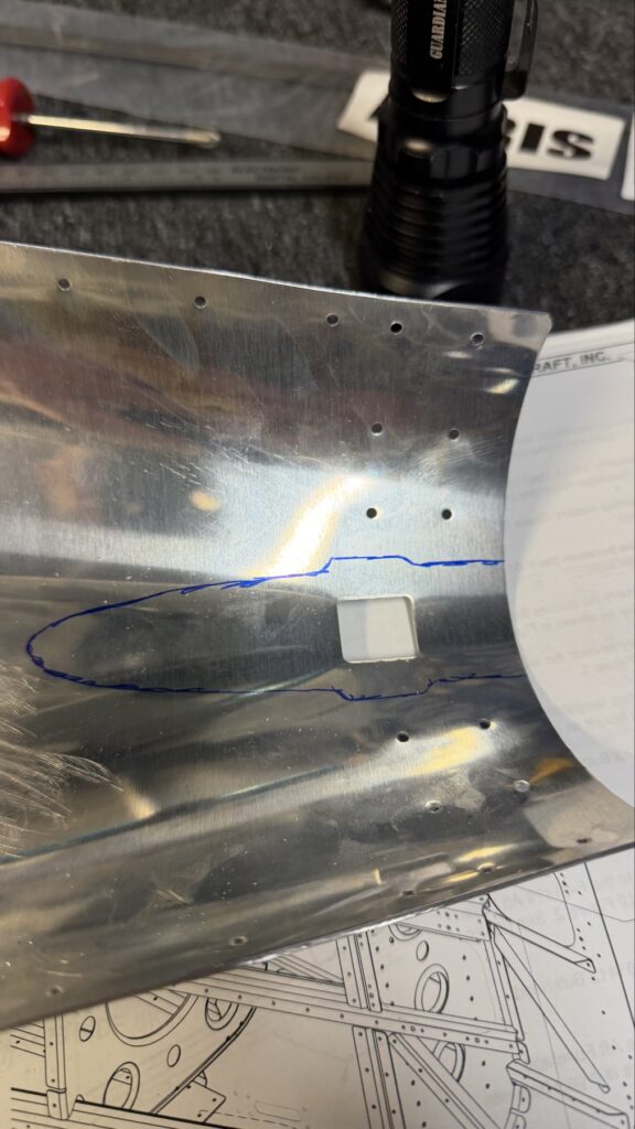 I didn’t say there were no small parts, just fewer..This piece gets shaped from basically just stock angle aluminum to the drawing on the top of the page. I made a couple mistakes here and ended up after a quick email exchange with Vans reproduced this part. Some more small parts..I had to grab the Vertical Stab and match drill some holes in these two pieces, as they join up later in the Empennage Assemble section so you want these to be right nowMore arts and crafts. This was more of that angle stock that I shaped in to what will become rudder stops laterThese are some beefy stiffeners, these have “structural, don’t mess up” written all over them in invisible inkOhhh finally getting to some bigger partsMore arts and crafts with metal shaping on the bandsawThis becomes structure inside where some bellcranks and autopilot servos attach later This part is about to get some tailwheel-based modifications..Taping the stencil in so I know where to remove materialTracing the stencil on to the aluminumWith that material removed, I do a test fit with the tailwheel holder thingy and the other components all right here. Additional shaping was required for the desired fit but I did get it there..This is what it looks like from the inside..and the back. The Tailwheel assembly will slide in to this piece way later in the process, but it’s cool that it’s there nowWith that shaping done, in to Primer Prep we go! You can see what my final shape ended up as, vs the template above.All these oddly shaped channel stiffeners need to get prepped as wellThese two long pieces are longerons; they’re heavier aluminum than all the other stiffeners that run lengthwise in the aft fuselage and provide a lot of support in the aft fuselage in general. They look bent in the picture, that’s because they are.. they help define the shape of the tail as it decreases in size. The precision of these kit parts and how they all line up together is very impressive.This blue vinyl film really should not be exposed to sunlight. This piece was under a small window in my shed for a little less than a year and it took a lot of work to get it removed since the glue changed itself up and decided it never wanted to let go.Little by litter, I eventually got it all removed