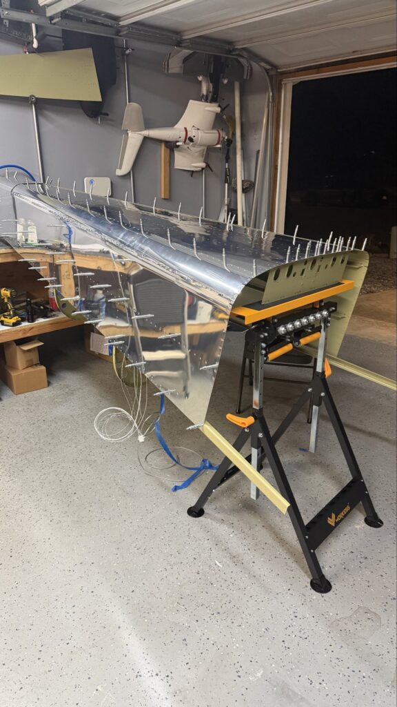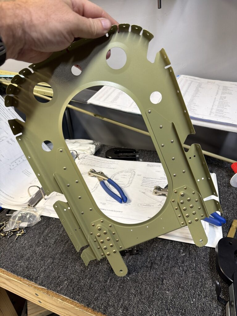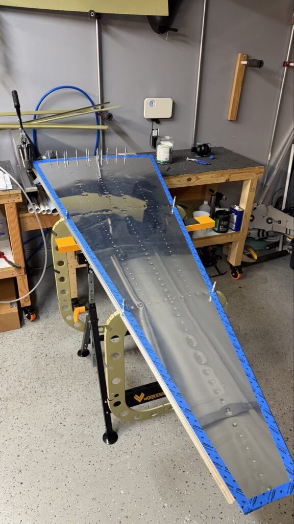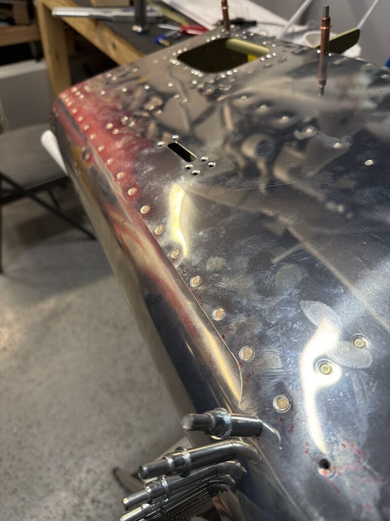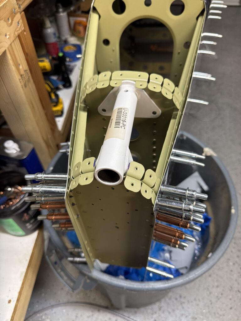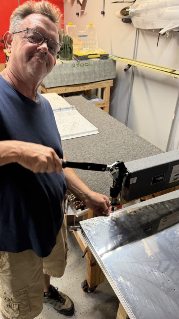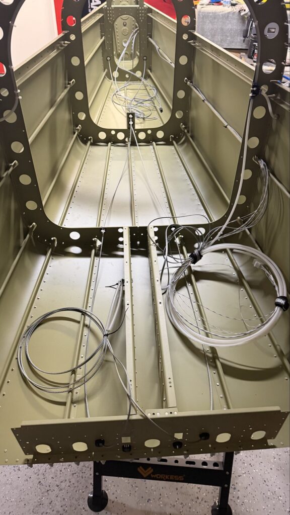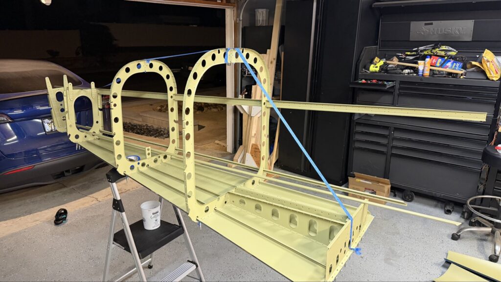 A really special friend came to visit me and some of our other friends here in San Diego, so of course I had to put him to work. Need to fill out that build log with as many friends as I can manage!Starting to get an idea of what things look like hereI turned that assembly over and attached the first two side skinsGetting the tailwheel holder attached so I can cover it up with that heftier skinHere is the skin clecod on. Don’t worry about those “spots” there, I wasn’t priming the outside of this part but I did break the alclad coating as a part of this metal shaping, so I deburred all of that and then went over it with an Alodine pen to protect it.Actually starting to run some systems wires, even an antenna cable!So many clecosThings getting permanent over here!This is one of the two rudder cables. These are guided out by these nylon parts that get riveted to the skinI am enlarging these holes to accept the static ports for the pitot-static systemThe Vertical got temp attached for some additional holes that needed to be matched upThis is the top skin that gets a rib and a doubler attached to it. This part is another of my priming mistakes.. I accidentally primed both the inside and the outside, foolishly thinking this part was just an internal doubler when in fact it was a visible skin.Speaking of oopsies, this access plate also got primer on both sidesHung one of the top-side skins and got the second one dimpled and also ready to hang, but it doesn’t go up until this part gets riveted down.Thanks to Jeff, I was able to finish these top skins and call it done!I had to get comfy though..Yeah.. here’s that top skin that shouldn’t have been primed on both sides. I don’t want to talk about it.