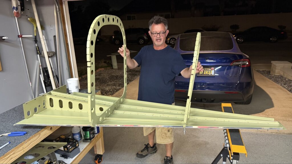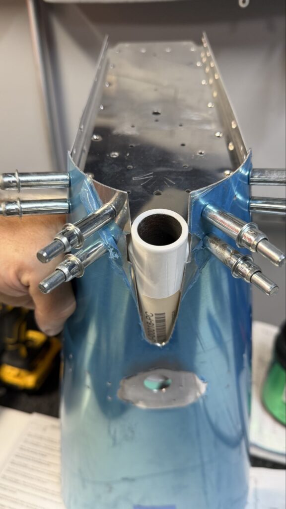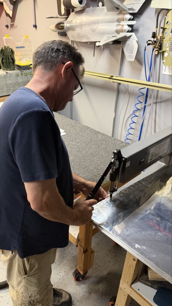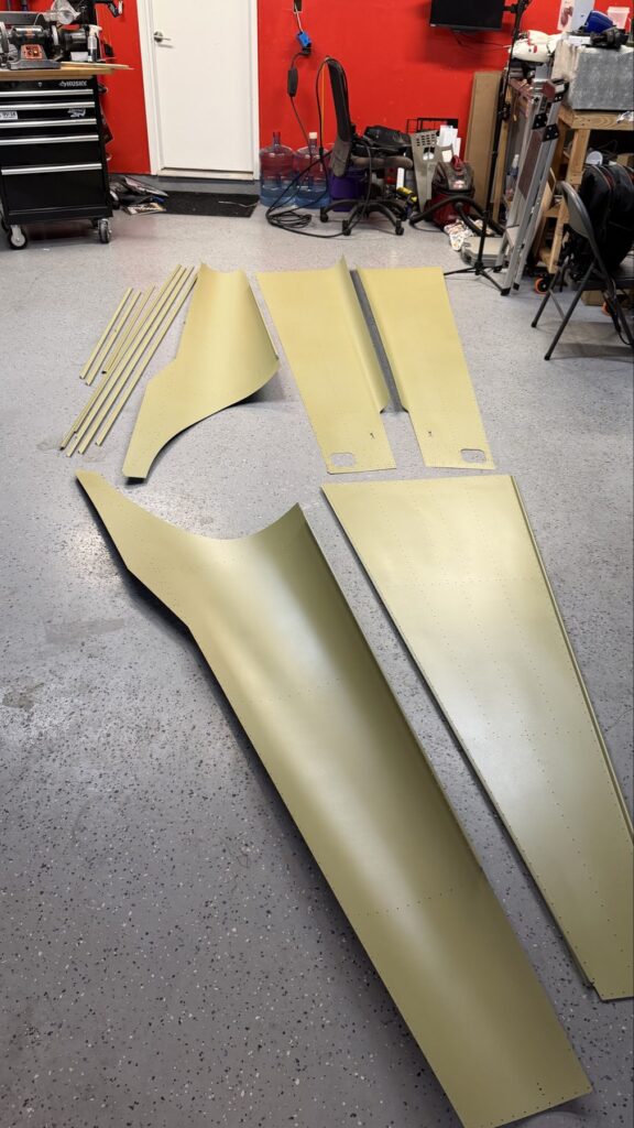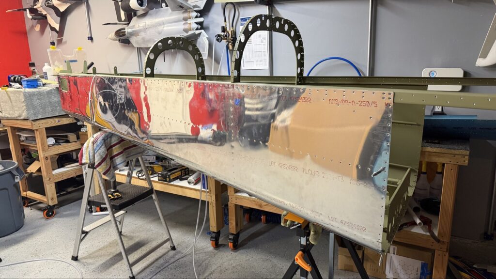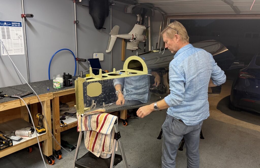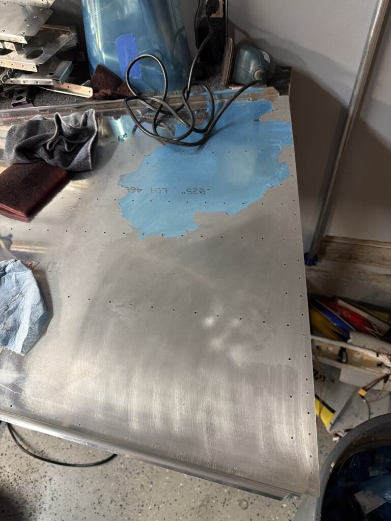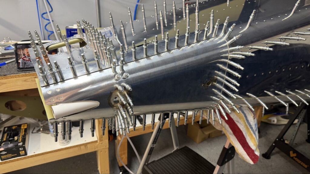 A really special friend came to visit me and some of our other friends here in San Diego, so of course I had to put him to work. Need to fill out that build log with as many friends as I can manage!Starting to get an idea of what things look like hereI turned that assembly over and attached the first two side skinsGetting the tailwheel holder attached so I can cover it up with that heftier skinHere is the skin clecod on. Don’t worry about those “spots” there, I wasn’t priming the outside of this part but I did break the alclad coating as a part of this metal shaping, so I deburred all of that and then went over it with an Alodine pen to protect it.Actually starting to run some systems wires, even an antenna cable!So many clecosThings getting permanent over here!This is one of the two rudder cables. These are guided out by these nylon parts that get riveted to the skinI am enlarging these holes to accept the static ports for the pitot-static systemThe Vertical got temp attached for some additional holes that needed to be matched upThis is the top skin that gets a rib and a doubler attached to it. This part is another of my priming mistakes.. I accidentally primed both the inside and the outside, foolishly thinking this part was just an internal doubler when in fact it was a visible skin.Speaking of oopsies, this access plate also got primer on both sidesHung one of the top-side skins and got the second one dimpled and also ready to hang, but it doesn’t go up until this part gets riveted down.Thanks to Jeff, I was able to finish these top skins and call it done!I had to get comfy though..Yeah.. here’s that top skin that shouldn’t have been primed on both sides. I don’t want to talk about it.